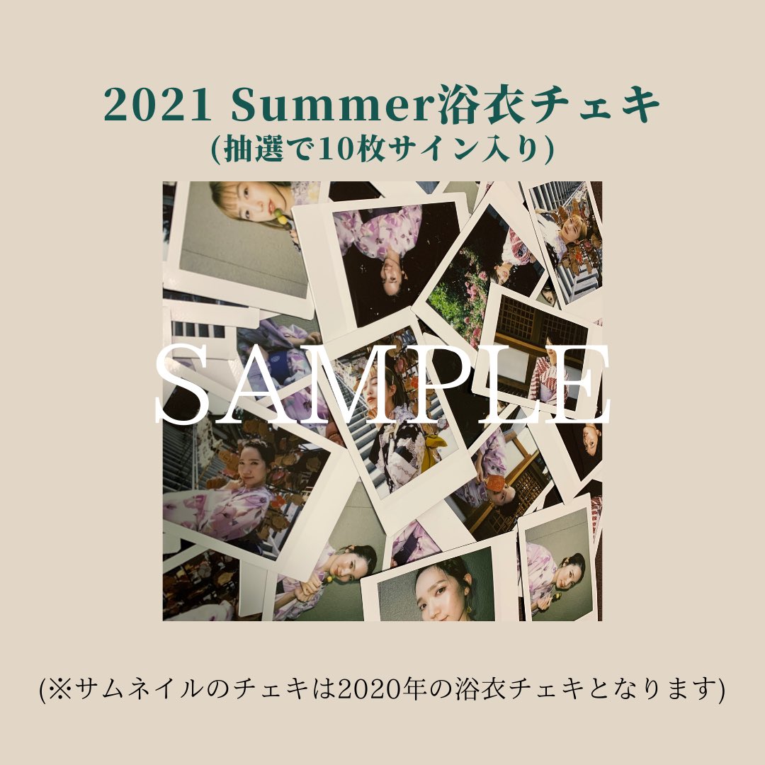 ※セット内容・・Summer私服チェキ(日付・サイン入り)1枚、浴衣チェキ(日付・サイン入り)1枚、Summer私服 生写真(ロゴ入り)4種、浴衣缶バッチ(ロゴ入り)1個、手描き残暑お見舞い